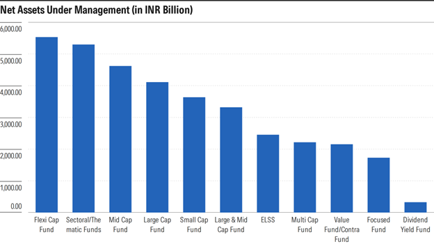 Notably, mid-cap and small-cap funds saw an uptick in inflows despite elevated valuations. Mid-cap funds attracted approximately INR 451 billion (vs. INR 414 billion in FY2025), while small-cap funds received INR 456 billion (vs. INR 417 billion). This suggests that investors continued to selectively allocate to higher-growth segments, potentially using market corrections as an opportunity to build exposure.